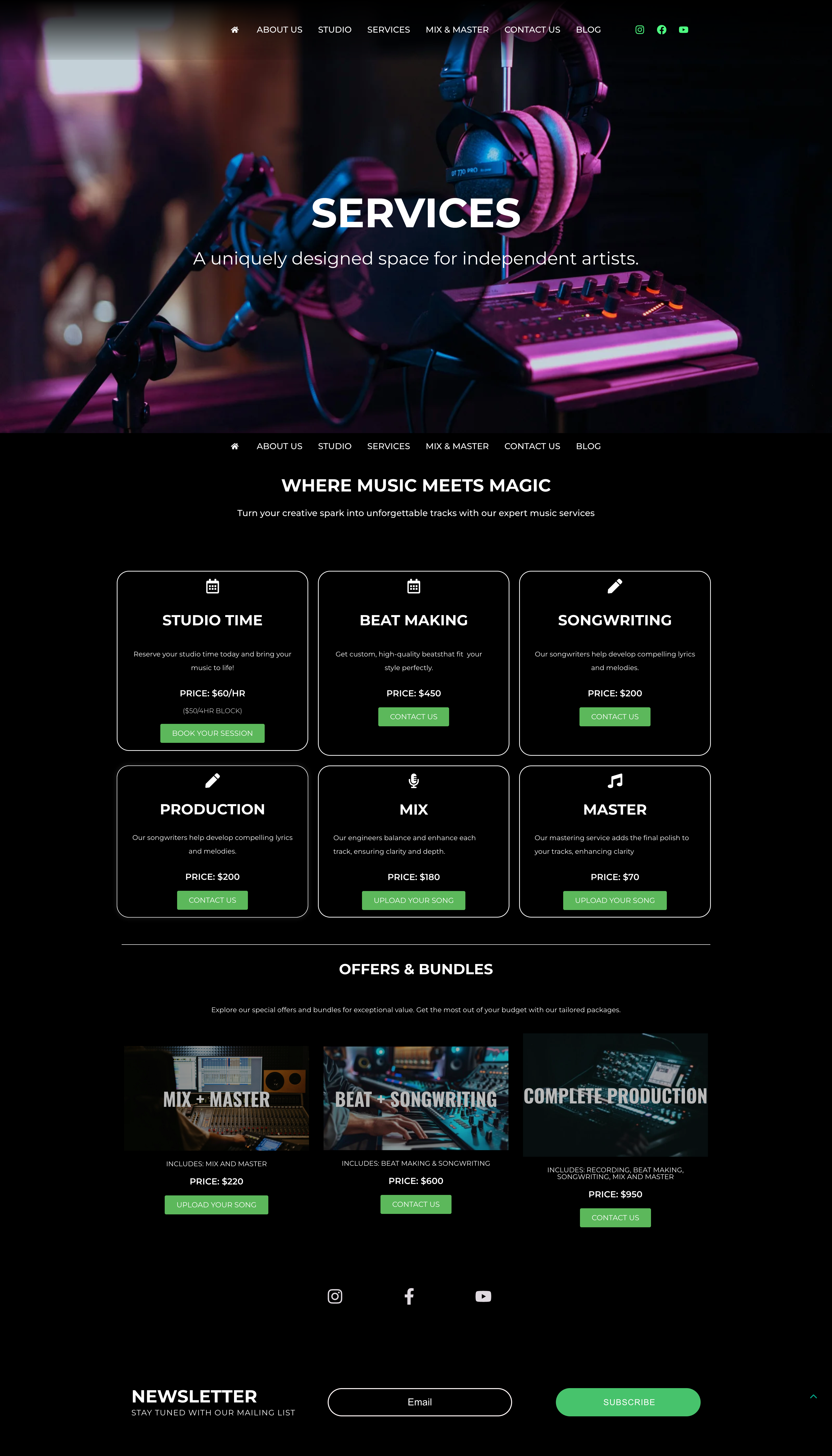 We collaborated with 303 Music Studio to design and launch a sleek, responsive website that reflects their creative brand and attracts new clients. The site features integrated appointment bookings, mix & master, and payment systems, allowing users to seamlessly schedule sessions, send samples, and make secure payments online. We also implemented SEO best practices and crafted engaging content to highlight their services and talent. The result is a professional, user-friendly platform that streamlines operations and supports business growth.